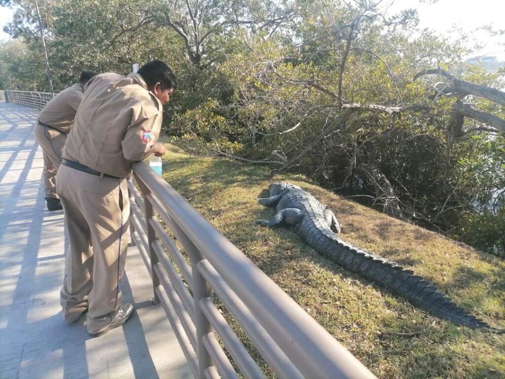 Los hechos ocurrieron en la tarde del domingo 24 de marzo, cuando transeúntes alertaron sobre la presencia del cocodrilo, que según los reportes, medía aproximadamente tres metros de largo. El saurio fue avistado en el área cercana al asta bandera, en los terrenos adyacentes a la feria, lo que generó preocupación entre los visitantes.