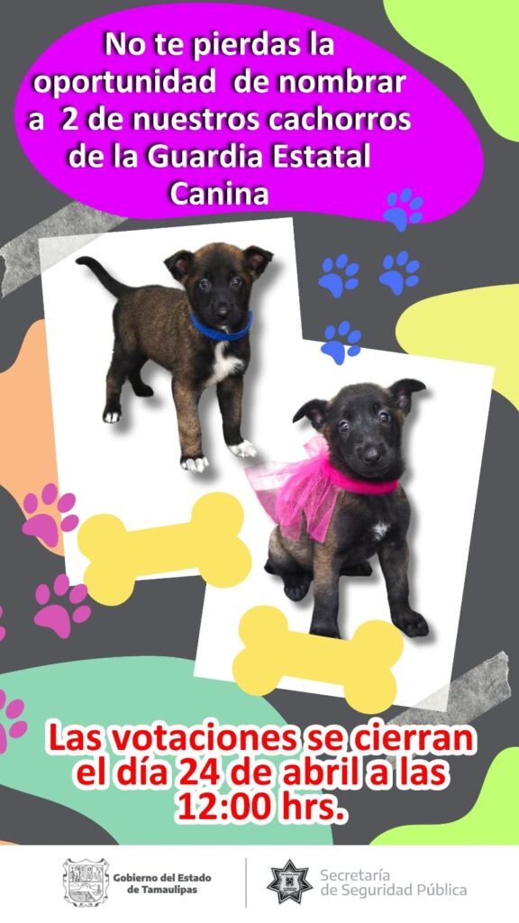 - La Secretaría de Seguridad Pública de Tamaulipas ha lanzado una convocatoria a la comunidad para nombrar a dos cachorros.